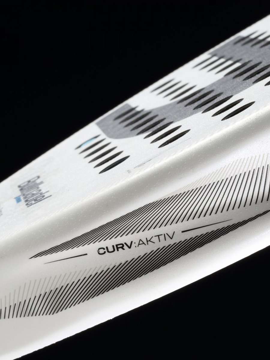 • Curv:Aktiv : Datorită răsucirii inovatoare a fețelor laterale, paleta dezvoltă o secțiune transversală variabilă de-a lungul profilului său, creând o senzație structurală similară cu un cadru dublu care funcționează în două direcții.